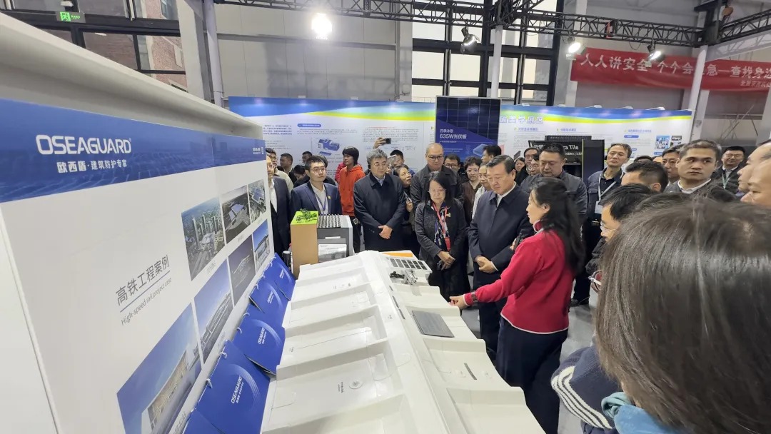 展會期間,住房和城鄉(xiāng)建設(shè)部黨組書記、部長倪虹,及相關(guān)領(lǐng)導(dǎo)一行蒞臨歐西盾展位,參觀了品牌核心防水產(chǎn)品TPS鋼塑一體瓦金屬屋面防水系統(tǒng)模型。